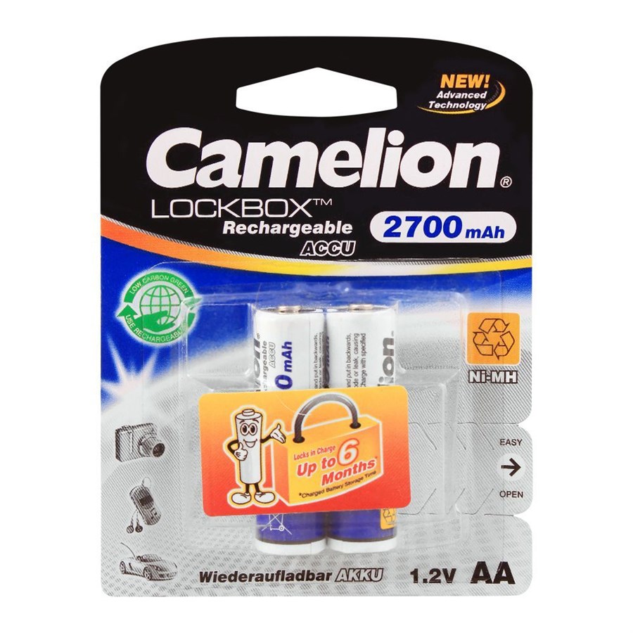 AA Rechargeable Battery - 2700mAhCamelion Always Ready is a pre-charged long-life rechargeable battery that saves energy and money to the consumer. It provides excellent performance-to-cost advantages over both conventional dry-cell batteries and other rechargeable batteries. One of its best advantages is able to maintain 85% the capacity after 6 months of storage once fully charged.
