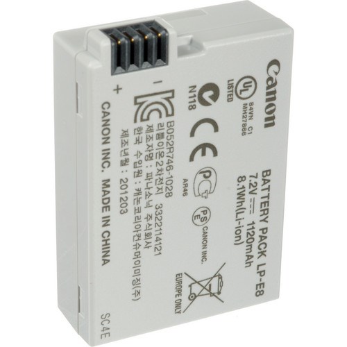 The Canon LP-E8 Rechargeable Lithium-ion Battery Pack has a capacity of 1120mAh, making it possible to shoot many photographs with your Canon