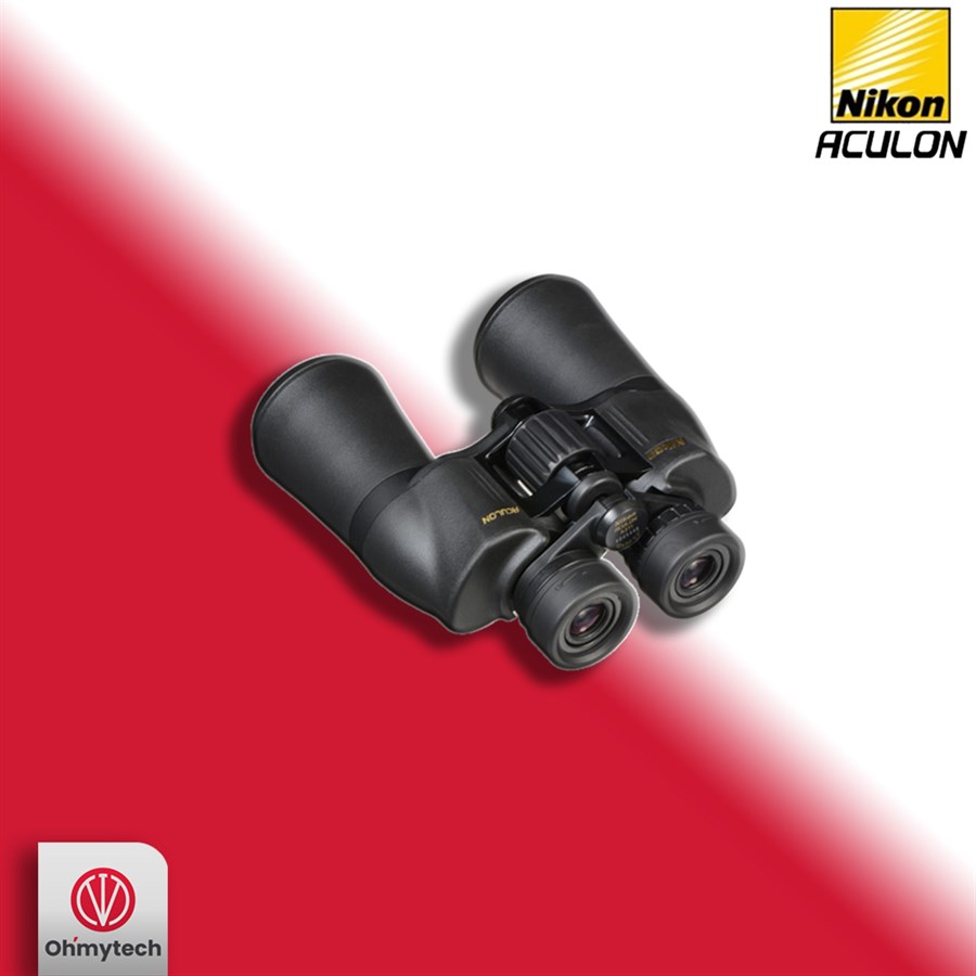 With powerful magnification and large objectives, Nikon's black 12x50 Aculon A211 Binocular is an ideal device for hunters, birders, and outdoor enthusiasts who require an optic that delivers the capability of making long-range observations in even the most challenging light conditions. The enhanced light-gathering ability offered by the 50mm objectives helps to ensure bright and clear views at dawn and dusk, or when peering into dense underbrush. Anti-reflection multi-coated aspherical lenses, made with environmentally friendly Eco-Glass elements, complement the BAK4 Porro prism light path to deliver high-contrast images with enhanced depth of field without edge distortion, as well as accurate color fidelity. Despite its 12x powerful magnification, this version of the A211 has a wide angle of view that helps to offset the appearance of visible hand shake that is common with high-power optics such as this, while presenting the user with spacious views. The Aculon's sculpted rubbe