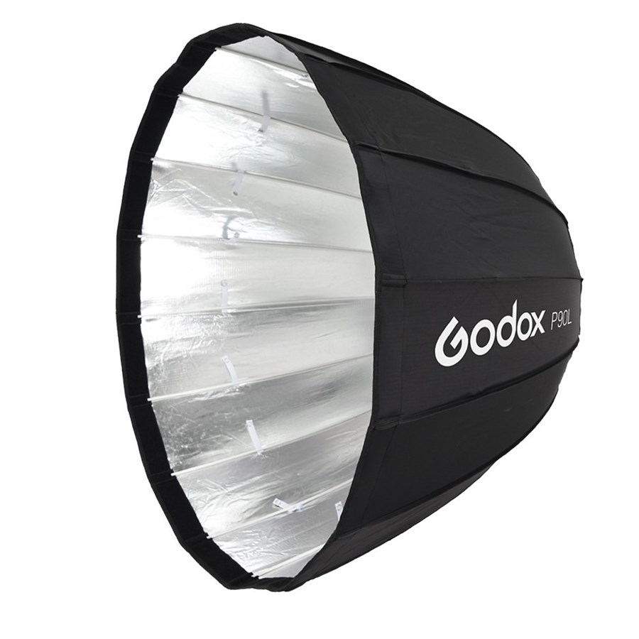 Ideal for portraits or fashion, the 35.4" P90L Parabolic Softbox from Godox is a 16-sided light-shaper that offers focused, soft output with a punchy, crisp edge that lends dimension and detail to your subject as well as natural-looking catchlights in their eyes. The unique 27.3" depth of the modifier renders significant falloff at the field edge and therefore an enhanced degree of directional control, decreased spill light, and easy feathering. The Parabolic Softbox comes with removable outer and inner diffusers that can be used together, one at a time, or not at all to achieve different levels of contrast. A Bowens Type-S speed ring is included and carry bag is included for storage and transport.