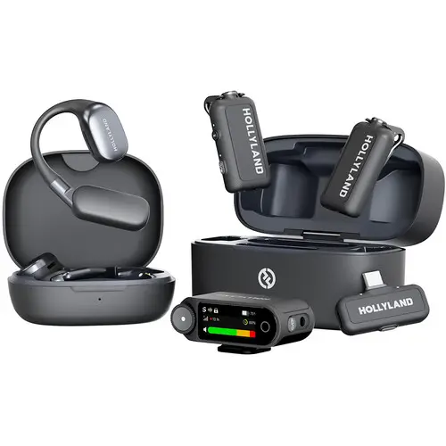The Hollyland LARK MAX 2 Ultimate Combo is a feature-packed, user-friendly digital wireless microphone system with wireless monitoring designed for videographers, podcasters, streamers, and content creators. It lets you capture two on-camera voices with broadcast-quality sound straight out of the box—recording directly to cameras or USB-C/Lightning mobile devices. Delivering crystal-clear 32-bit/48 kHz audio throughout the entire signal chain, it captures every detail from recording to transmission to monitoring.