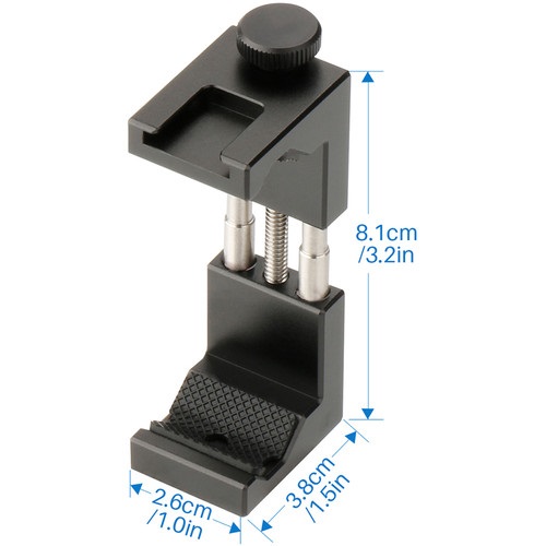 With this ST-02S Metal Smartphone Tripod Mount from Ulanzi, you can take photos and video with your phone while enjoying the stability and freedom that a tripod offers. The mount is made from matte black anodized aluminum and can hold any smartphone from 2.6" to 3.7" wide. The mount itself connects to 1/4"-20 compatible tripods. When inside the mount, 3M-backed rubber padding will help protect your phone from scratches and damage. Cold Shoe This tripod mount features a top cold shoe that gives you the ability to add optional accessories, such as an LED light or external microphone.