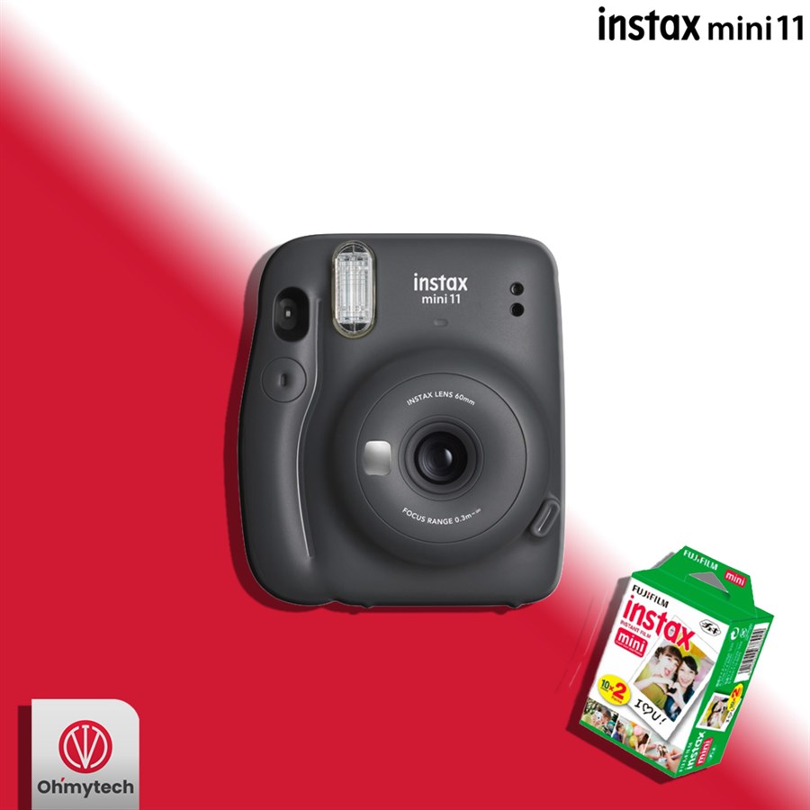 Comprising everything needed to begin taking instant film photos, the FUJIFILM INSTAX Mini 11 Instant Film Camera with Twin Pack of Instant Film Kit pairs the compact and versatile instant camera with 20 sheets of INSTAX Mini instant film. FUJIFILM INSTAX Mini 11 Instant Film Camera A fresh take on a beloved instant film camera, the FUJIFILM INSTAX Mini 11 is a sleek, fun, and stylish camera capable of producing instant credit card-sized prints. This model has been updated with an automatic exposure function that no longer requires manual adjustment for different lighting conditions, and the built-in flash benefits working in low-light conditions. It has also incorporated its close-up shooting capabilities into the 60mm f/12.7 lens design for seamless shooting from 11.8" to infinity. Rather than needing to use a lens attachment, this integral design means you just need to extend the lens barrel to the Selfie Mode position for close focusing from 11.8" to 19.7", and a built-