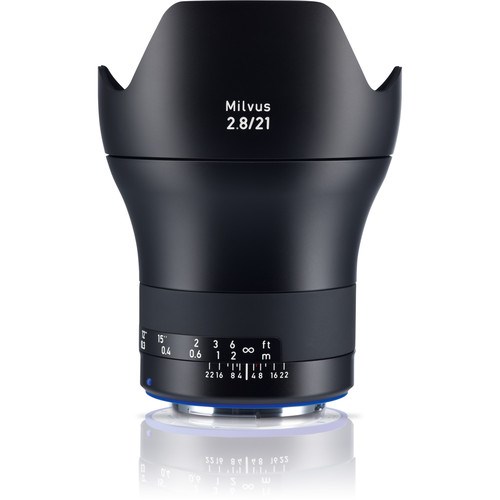 An expansive wide-angle for Canon EF-mount cameras, the Milvus 21mm f/2.8 ZE from ZEISS features a sophisticated optical design to control distortion and produce sharp, clean imagery with a dynamic perspective. A Distagon concept, along with a floating elements system, is employed for consistent performance throughout the focusing range and five anomalous partial dispersion elements are featured to control chromatic aberrations for increased clarity and color accuracy. For minimizing flare and ghosting, an enhanced ZEISS T* anti-reflective coating has been applied to benefit working in difficult lighting conditions.